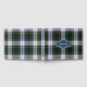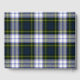 Colorido livro de hóspedes, feito com o clássico padrão de xadrez de tartan Gordon Dress, azul, amarelo, preto e branco. Uma área de texto decorativo azul, na frente do livro, tem texto personalizado branco pronto para personalizar.
