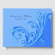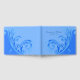 Bonito livro de convidados azul com um ornamentado azul mais escuro floresce. Personalize os campos de texto para seu dia especial.