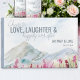 Livro de hóspedes do casamento de montanha, escrito com "aplausos para amar risos e alegremente para sempre" e uma paisagem típica de serras azuis e prados cor-de-rosa de flor silvestre. Personalize com a ferramenta design se você quiser mover ou editar qualquer texto não modelado. A beleza da natureza inspirou um design cênico - perfeito para destinos ao ar livre, refúgios montanhosos e refúgios de parques rurais ou cinzas azuis empoeiradas e temas cor-de-rosa. Por favor, procure na minha coleção Mountain Meadow itens correspondentes ou envie-me uma mensagem para criar os modelos de que necessita.