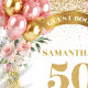 Comemore a fazer cinquenta em estilo com a nossa 50ª Coleção de Livros Convidados de Aniversário, com elegantes flores de cor d'água, saltos altos cor-de-rosa-chico e brilhando detalhes de brilho dourado. Projetados para serem simultaneamente glamourosos e memoráveis, esses livros de hóspedes são a forma perfeita de capturar as mensagens, desejos e memórias sinceras de sua celebração de marco. Cada livro de hóspedes personalizado pode ser personalizado com o seu nome, idade e detalhes do evento, fazer-o como uma manutenção única que reflete o seu estilo e personalidade. Com designs de alta qualidade e um toque de brilho, estes livros acrescentam sofisticação à decoração do seu partido enquanto preservam as memórias que você vai apreciar por anos. Ideal para jantas de aniversário, saraus glamourosos, ou celebrações de marcos, esta coleção garante que todos os hóspedes têm um belo espaço para compartilhar seus desejos calorosos. Desde os louros e flores de vassoura à maravilhosa luz do ouro, cada detalhe é criado para celebrar o seu fabuloso 50º no estilo.