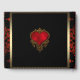 Livro de presentes de casamento vermelho preto e dourado com belo coração de cetim vermelho e dourado em um elegante fundo de damasco vermelho preto e dourado. Adicione o texto de sua escolha no estilo de fonte e cor que preferir. Este livro de presentes de casamento vermelho preto e dourado é facilmente personalizado com seu texto na frente, verso e lombada.