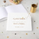 Um elegante e branco Sinal de Casamento no Livro, com nomes de noiva e noivo, um pequeno coração de ouro falso de amor e brilho