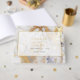 Elevem a sua celebração com este sofisticado livro de convidados de casamento, mostrando um efeito luxuoso de mármore branco e de ouro com delicados salpicos de tinta artística. Com um enquadramento em ouro elegante e adornado com tipografia refinada e elegante, este design clássico traz o estilo do eterno a qualquer casamento de gravata moderna ou negra. Oferecendo uma canvas glamourosa e em escala superior para os hóspedes deixarem mensagens sinceras, ela serve tanto como uma bela manutenção como como uma impressionante obra de decoração. Os sotaques sutis de pedra granítica e os detalhes de ouro em ximersão fazem deste livro convidado um toque de na moda sem esforço, garantindo que suas memórias de casamento sejam preservadas com elegância e luxo por anos.