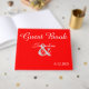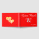 O pôr do sol romântico brilha em corações amarelo-ouro a rosa em vermelho. Personalize com os primeiros nomes da noiva e do noivo e casamento de data em branco no cobrir frontal. Personalize o verso do livro com dois corações e as iniciais do casal. Nossa História do Amor é escrita na coluna do livro. Peça aos convidados de casamento que assinem o seu livro de convidados de casamento como um livro de guardas adorável. Design de Arte Original por TamiraZDesign.