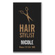 Tesoura Dourada do Magnet Stylist com fundo preto. Personalize com suas informações pessoais e cor.