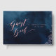 Este elegante e moderno livro de hóspedes de caligrafia com design floral rústico de cor rosa pincelada em cor azul-marinho escuro, excelente para casamento rústico moderno, casamento da primavera à noite. Veja todas as peças correspondentes na coleção abaixo.