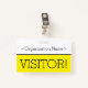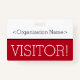 Este design elegante apresenta a mensagem "VISITOR!" e um nome personalizável da empresa ou outra mensagem personalizada. Um crachá como este poderia ser usado para indicar que um visitante ou convidado no local de trabalho pode estar lá. [~Z0000307]