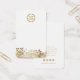 Vintage lace em dourado falso em fundo branco editável a cores, personalizado com o logotipo da sua própria empresa, informações de contato e etiqueta de mídia social, placas de brinco personalizadas simples e na moda, exclusivas com logotipo. Os dois orifícios serão impressos como mostrado e não conterão furos ou fendas predefinidos. Selecione "Clique para personalizar mais", você pode movê-los para a posição desejada, também adicioná-los ou excluí-los.