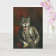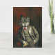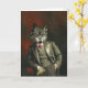 Este cartão de saudações é ilustrado com um vitoriano vitoriano, Sr. Wolf, num traje afiado.