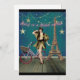 A vinheta divertida e divertida apresenta recorte de foto de garota flapper, bicicleta rosa, Torre Eiffel, um fundo angustiado com uma terra de estrelas e texto "Vive em um Mundo do Sonho" em tons cor-de-rosa.