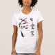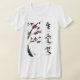 Um t-shirt afligido com design chinês da flor de cerejeira da aguarela, com dizer dos caráteres chineses vivo, ama, ri.
