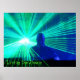Um dj misturando-o nos pavimentos e banhado à luz laser por trás.