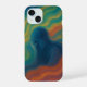 A stunning phone case with flowing waves of teal, orange, and blue. Express your individuality and creativity with this bold design.