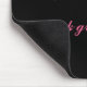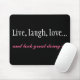 Vivo, riso, ame o computador preto Mousepad. Este mousepad é preto com a rotulação branca e cor-de-rosa que lê, "viva, o riso, o amor… e o excelente do olhar que faz o!"
