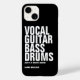 Um design de tipografia sobre música com o texto: VOCAL, GUITARRA, BAIXO & BATERIA, apenas uma banda de rock
