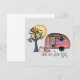 Encantador e assustador collide neste cartão de saudação de Halloween que apresenta uma carrinha acolhedora sob galhos de árvore com o trocadilho divertido "Você é Bonita". Ideal para amantes de outono, aventuras de Halloween e vibes de acampamento assustadoras.