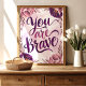 Embrace coragem e resiliência com este poderoso impressão de arte "Você é Corajoso". Apresentando tipografia ousada, escrita à mão em tons de roxo e rosa, adornada com uma delicada estrutura floral de aquarela, esta peça serve como um lembrete gentil da sua força interior. Perfeito para adicionar um toque de inspiração e autoafirmação ao seu quarto, escritório ou espaço pessoal.
