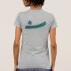 Coloque seu nome/apelido aqui. Uma camisa futurista com um intrincado padrão computacional / fractal / geométrico / algorítmico / caleidoscópico, luas em crescente e um símbolo para a ciência. O texto poderia ser personalizado. Cinza, laranja, azul turquesa Para um futuro feliz guiado pela Razão. Vejo-te no Futuro! E a Razão é o porquê.