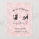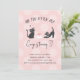 O convite perfeito para o seu amante de gatos. O design tem um retro flare com cor rosa e preta como as cores dominantes.