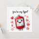 Compartilhe um sorriso e um bom sentimento com este charmoso cartão com um personagem fofo de saco de sangue cercado por corações e a mensagem lúdica "Você é o meu tipo!" Perfeito por enviar uma nota única e encantadora a alguém especial. Esta carta adorável é uma maneira deliciosa de expressar seu afeto e apreço.