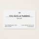 Ei... Você é péssimo no estacionamento. Cartão de visita. Perfeito por colocar sob a lâmina de alguém. Esta versão tem menos profanação e é menos ameaçadora do que o nosso cartão clássico. Na próxima vez que você vir alguém estacionado como um buraco-A, não seria legal ter uma dessas cartas para deixá-los saber como você se sente?