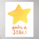 TODOS OS PRODUTOS, TEXTO E CORES DE FUNDO SÃO TOTALMENTE PERSONALIZÁVEIS. Uma estrela doce, amarela e design de texto original abaixo dela dizendo "Você é uma Estrela", ambas pintadas em aquarela. Perfeito por deixar que os amigos, a família ou as crianças em sua vida saibam o quanto são excelentes e o quanto são apreciados e amados. Também adorável como obrigado! Copyright © 2012 Mariana Musa para Limões Flutuantes. Todos os direitos reservados.