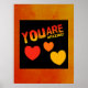 Personalizável, você é um poster incrível usando cores de gradiente vermelho, laranja e amarelo com corações coloridos correspondentes. O plano de fundo preto pode ser alterado pelo cliente. Por celeste@khoncepts.com