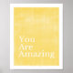 Poster num amarelo claro com as palavras "Você é Incrível". Esta poster é uma das quatro que podem ser agrupadas ou ver as quatro em uma poster na minha loja.