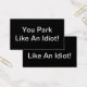Cansado de pessoas estacionando como idiotas? Deixe isso no carro da próxima pessoa que ocupar dois lugares de estacionamento, parques muito próximos de você ou parques em uma zona de estacionamento.