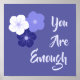 Aumente a autoestima com esta mensagem positiva de validação e apreciação! Ideia de presente de excelente para amigos e família ou como uma afirmação positiva para si mesmo. Excelente para decoração de casa ou escritório. Veja nossa coleção desses Impressões e Posters Inspiracionais Positivos. Este design inclui flores em tons de púrpura e o texto "Você é Suficiente".