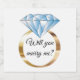 Uma ilustração de uma aliança de diamante com uma banda de ouro, e as palavras Will you me Casado dentro the ring. Uma maneira divertida e única de pop da questão!