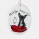 Pop a questão é a maneira mais doce possível. Dê a ela ou a ele esse ornamento "você me casado". Este design de ornamento apresenta um Bulldog Francês deitado em um travesseiro vermelho. Um noivado e um coração vermelho.