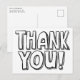 Perfeito para crianças, este cartão postal de agradecimento ilustrado e com letras maiúsculas desenhadas à mão em preto e branco simples permite que qualquer pessoa seja o artista e pinte as letras e o fundo para tornar a arte de escrever um bilhete de agradecimento um pouco mais divertida. No verso, um endereço de devolução personalizado torna ainda mais fácil escrever e enviar uma nota de agradecimento, além do porte postal econômico de um cartão postal.