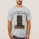 Esta camisa engraçada da cultura do geek caracteriza as palavras: "Você pode nunca ter livros demais" e uma estante e um assoalho rendidos 3D com as pilhas de livros que incluem um sobre a desordem de organização.
