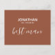 Modelo de cartão postal de proposta de honra de dama de casamento clássico apresenta design fabuloso na frente e uma mensagem personalizável no verso. Você pode personalizá-lo com o botão personalizar. Envie sua mensagem de proposta como recém-casados para amigos e familiares usando este lindo e simples cartão postal de proposta de casamento com as palavras.