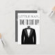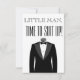 Hora de se Aprontar, homenzinho, com smoking na frente. Personalizado com o nome do portador de aliança, mensagem, nome do noivo e uma data dada ou a data do casamento.