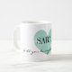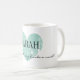 Você será minha caneca da dama de honra com design romântico rústico bonito do símbolo do amor do azul da cerceta/turquesa do coração do vintage com tipografia elegante do roteiro. Cor feita sob encomenda do fundo e nome ou monograma personalizado. Personalize pedidos do casamento para noivas empregada doméstica, madrinha de casamento, florista. matrona da honra, padrinhos de casamento etc. Faça sua própria caneca de café engraçada para o primo, a irmã ou a irmã na lei. Os acessórios à moda para a festa de casamento do tema da praia, o chá de panela, o noivado, o aniversário etc. resistiram ao ícone com texto elegante.