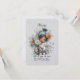 Um lindo cartão de proposta de Dama de Flores com uma jovem garota de desenho animado vestida de prata cercada por flores grandes.