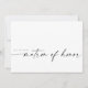Esta design minimalista é perfeita para a noiva moderna! Apresentando um script de assinatura manuscrito emparelhado com uma fonte simples sans-serif. Personalize com a sua própria mensagem no verso ou ordene-a vazio e manuscreva a sua mensagem. Veja na loja se há placas Bridesmaid correspondentes!
