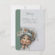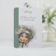 Um belo cartão de proposta de Menina de Flores com uma jovem garota de desenho animado espiando por trás de uma parede verde.
