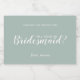 "Você Será Minha Porta-Voz?" Rótulos de vinhos espumantes de Script Moderno com a redação "Will You Be My Bridesmaid?" no estilo de letra branco de script moderno com detalhes em fonte branca de sans serif moderna em fundo verde de sábio.