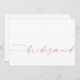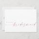 Esta design minimalista é perfeita para a noiva moderna! Apresentando um script de assinatura manuscrito emparelhado com uma simples fonte sans-serif em um rosa esbranquiçado para um pop de cor sutil. Personalize com a sua própria mensagem no verso ou ordene-a vazio e manuscreva a sua mensagem. Veja a loja para combinar cartões Maid/Matron of Honor!