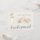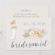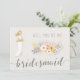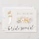 Você vai ser meu cartão da Bridesmaid com uma menina loira em vestido branco de casamento, belos buquês florais cor-de-rosa e texto personalizado de cinza, onde você pode adicionar seu nome e as damas de Bridesmaids