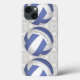 Mala dura do iPhone de vôlei com três volleybolas alinhadas verticalmente em minúsculas cinzas pálidas e padrão de mandala branca—clique em "Personalizá-la" para mudar a cor de fundo e assistir enquanto os painéis não-brancos de vôlei mudam para a cor que você seleciona (atualmente azul de córnfo) - personalize com seu nome - por katz_d_zynes
