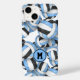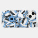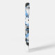 Esta capas de iphone temática de vôlei para raparigas apresenta volichões de dimensão variada, de cor azul clara, preta e branca, dispostos de forma aleatória sobre um fundo branco personalizável — os painéis azul e preto do volleyball são misturados com um padrão caleidoscópico floral para uma aparência esporosa e artística que ainda é esportiva - personalize seu monograma - por katz_d_zynes