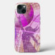 Caso difícil do iPhone de voleibol feminino com placa gráfica de voleibol em rosa e roxo e jogador de voleibol feminino pulando na rede mais nome personalizável de katz_d_zynes