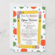 Um convite com um fundo de bolinhas verde, laranja e azul na frente e atrás. A frente apresenta lápis amarelas dispostas em forma de retângulo com centro branco puro. Personalize com o nome do professor, a nota, a localização e a data das suas costas para a orientação da casa aberta da escola.