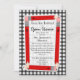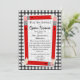 Um convite com um fundo de gingham de cinza na frente e atrás. A frente apresenta lápis vermelhos dispostos em forma retangular com centro branco puro. Personalize com o nome do professor, a nota, a localização e a data das suas costas para a orientação da casa aberta da escola.