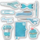Alguns dos meus desenhos de amor feitos à mão estão disponíveis como adesivos. Clipes de arco, tesoura, cupcake, café de viagem, planejador, fita de washi, caneta e muitas cintilações azuis. Aproveite este volume 1.
