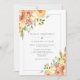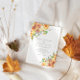 Um convite de casamento elegante perfeito para o outono, com uma borda de flores laranja de cor d'água. O texto personalizado está na fonte da cinza serif.